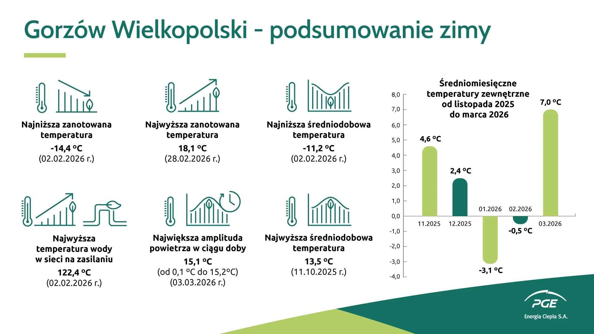 Ponad 20 dni z rzędu z ujemną średniodobową temperaturą i najzimniejszy styczeń od 2010 roku. Gorzowski oddział PGE Energia Ciepła podsumowuje sezon zimowy 2025/2026.