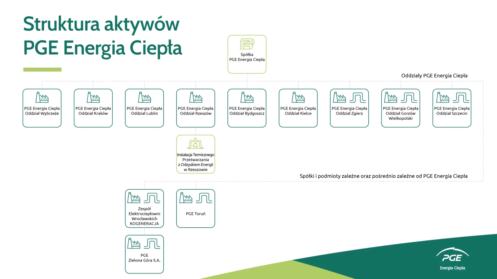 PGE Energia Ciepła prowadzi swoją działalność poprzez oddziały, spółki i podmioty zależne i pośrednio zależne.