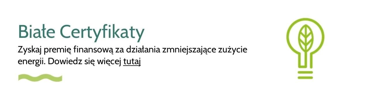 Dzięki PGE Energia Ciepła możesz zyskać premię finansową za działania zmniejszające zużycie energii. Zapoznaj się z ofertą dotyczącą pozyskiwania Świadectw Efektywności Energetycznej, potocznie zwanych Białymi Certyfikatami oraz Programów Bezzwrotnych Dofinansowań.